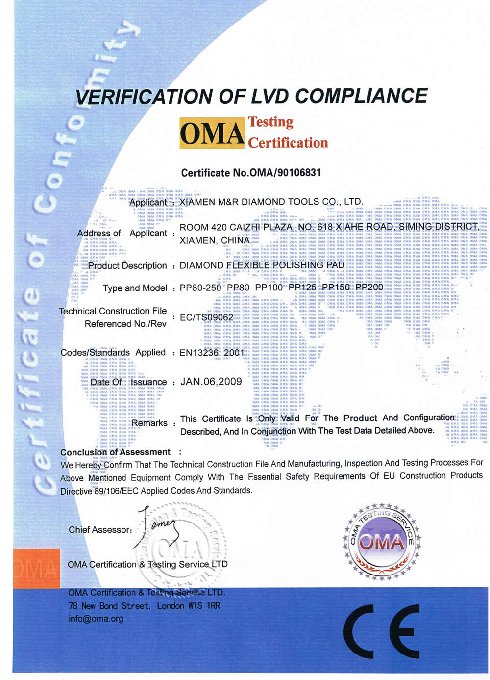 磨片CE证书